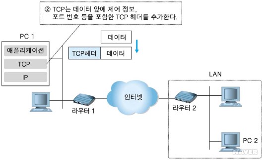 - TCP header : 어플리케이션으로 부터 받은 데이터를 TCP계층을 경유하여 IP로 보낼 때, 데이터 앞에 제어 정보, 포트 번호 등을 포함한 TCP 헤더를 추가한다.